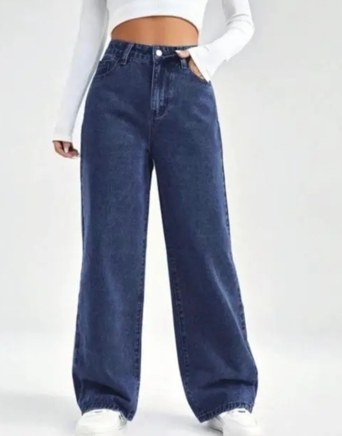 Dark Blue Straight Fit Wide Legg Jeans